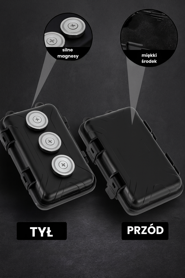 To nie jest zwykłe pudełko. To magnetyczny sejf, który możesz przymocować do dowolnej metalowej powierzchni.Trzy silne magnesy neodymowe utrzymują go nawet przy dużych wibracjach, a wodoodporna konstrukcja chroni zawartość w każdych warunkach.W środku miękka wyściółka — delikatna dla kluczy, twarda dla pogody.